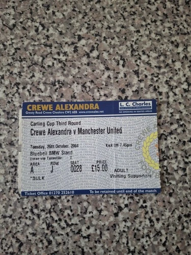 MATCH TICKET CARLING CUP CREWE ALEXANDRA V MAN UTD 25th oct 2006