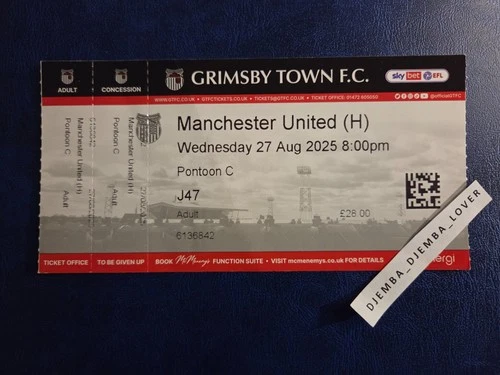 RARE UNUSED TICKET: Grimsby Town - Manchester Man United 2025/2026 RED VERSION
