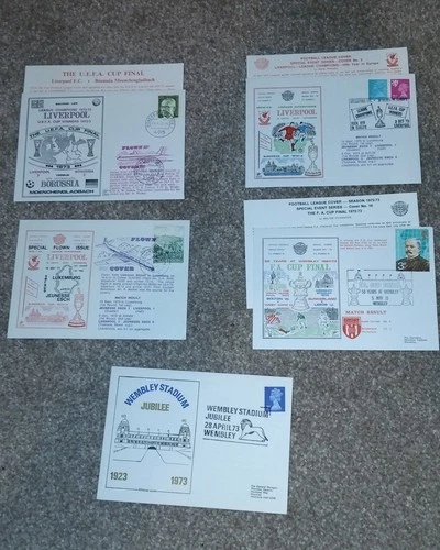 First Day Covers 1973 Liverpool FC FA Cup and Champions League + Wembley 1973
