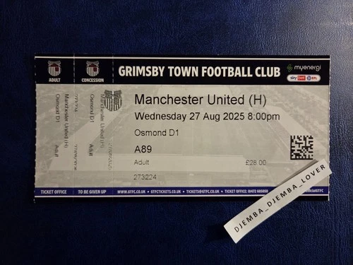 RARE UNUSED TICKET: Grimsby Town - Manchester Man United 2025/2026 BLUE VERSION