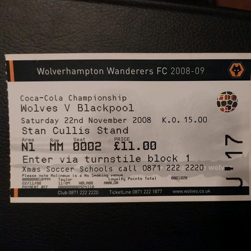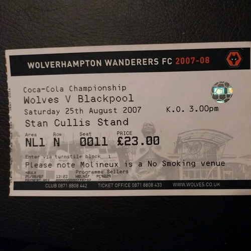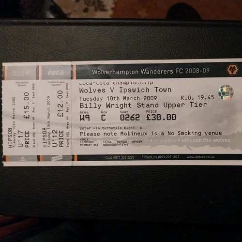 WOLVERHAMPTON WANDERERS v IPSWICH TOWN MATCH TICKET 2008/9