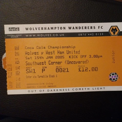WOLVERHAMPTON WANDERERS v WEST HAM UNITED MATCH TICKET 2004/5