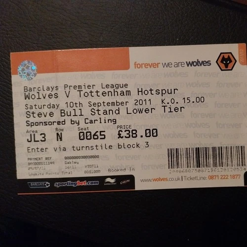 WOLVERHAMPTON WANDERERS v TOTTENHAM HOTSPUR MATCH TICKET 2011/12
