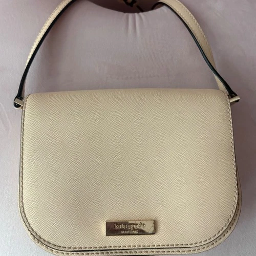 Kate Spade New York Cream Saffiano Leather Crossbody Saddle Bag Gold Logo