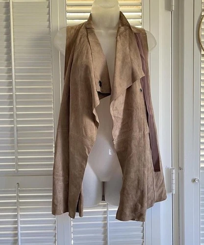 Italy Designer leather Bohemian Long Vest Shrug Blouse Wrap Suede Leather M 10