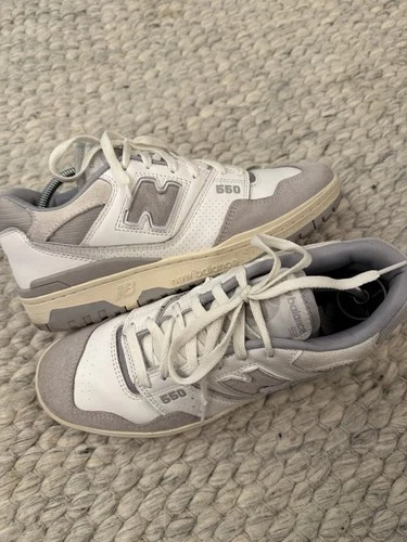 New Balance 550 Trainers UK Size 8 White And Grey Leather And Suede