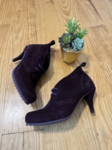 Pedro Garcia 38 (US 7.5) Maroon Suede Leather Lace Up Heel Ankle Boots Spain