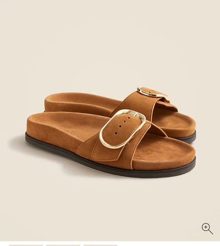 J. Crew NIB Colbie Oversized Buckle Sandals in Suede - Rich Whiskey - Size 8.5