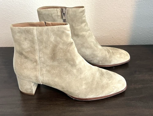 Via Spiga Tan Suede Leather Ankle Boots Women Size 12 Block Heel Booties.
