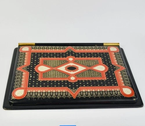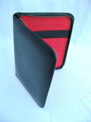 Large leather writing case 8.25 inches x 6.5 Black outsider, red lining