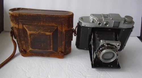 Vintage MAMIYA SIX Folding Camera W/ Leather Case Japanese Writing On Case