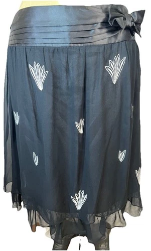 Richard Malcolm Vtg Y2K Black Silk Sheer Chiffon Skirt W/ Embroidery 10