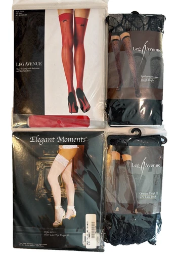Lot of 4 Pkgs Leg Avenue Thigh High Stockings OSFM Black Spiderweb Lace New