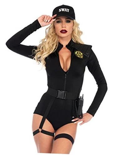 womens 5 Pc Swat Team Babe Costume With Bodysuit, Belt, Leg X-Small Black