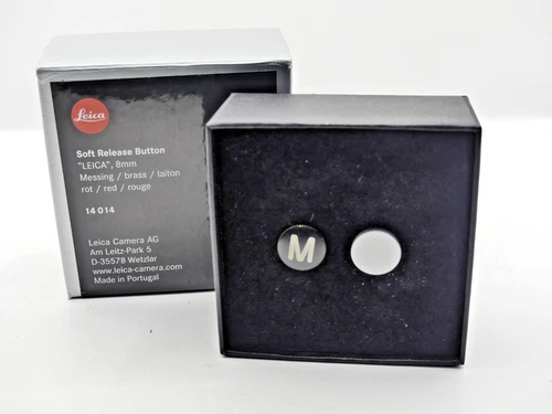 GENUINE LEITZ LEICA 14018 SOFT RELEASE BUTTON 8MM BLACK WITH M LOGO 2580