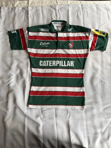 Cotton Traders Leicester Tigers Rugby Shirt Green Red White Caterpillar Size 42