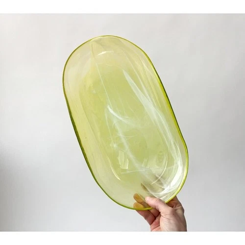 Lemon Lime Swirly Patterned Art Glass Oval Shaped Vintage Decorative Plate