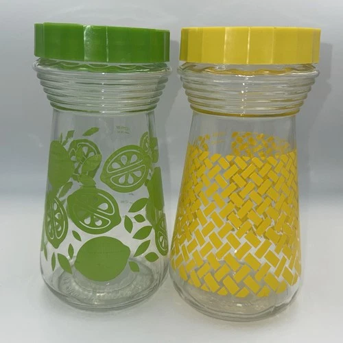 MCM Vtg Pyrex Glass Lime Juice Carafe Pitcher & Lemon Yellow Pitcher 24 oz Set