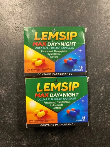 LEMSIP MAX DAY & NIGHT COLD & FLU RELIEF CAPSULES 2 x 16 PACKS - EXP 12/26