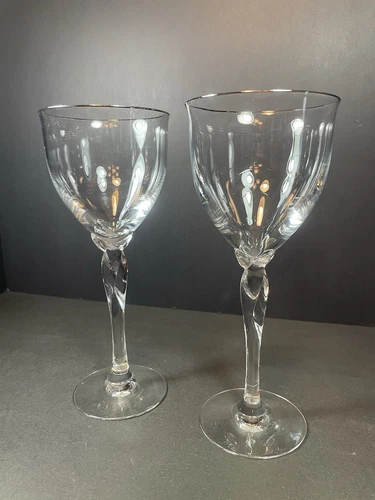 2 LENOX Rhythm Crystal Goblets Silver Platinum Rim Twisted Stem Wine Glass 8.5”