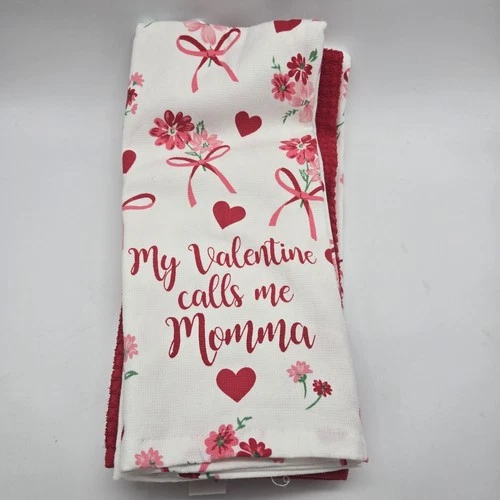 3 Deborah Connolly My Valentine Calls Me Momma Set Of Kitchen Tea Towels Floral