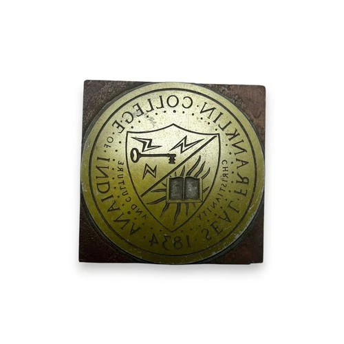 Vintage Franklin College Indiana Seal Letterpress Block, Academic Crest Printing
