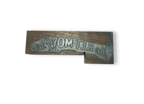 Vintage Letterpress Printing Block – “The KET-MOY Press” Curved Banner Typograph