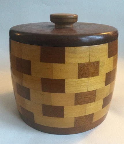 Vintage mcm Retro Kitchenalia 60’s block wood biscuit barrel canister & Lid Prop