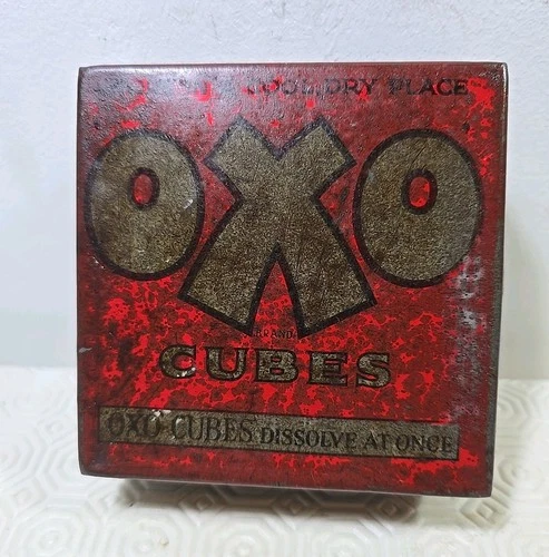 Vintage 1950's Oxo Cube Tin Storage Container with Lid Retro Kitchenalia Prop