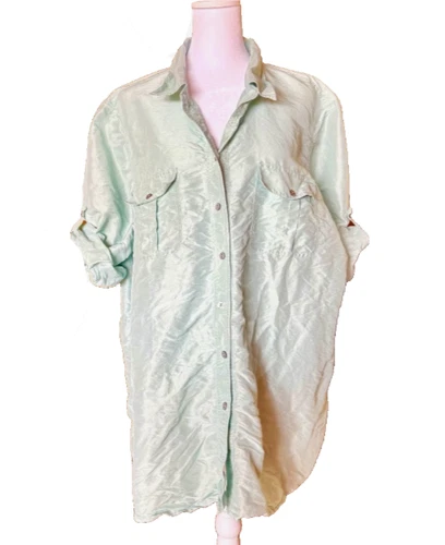 Vintage 1990s The Avenue Silk Blouse Iridescent Light Green Button Up 18/20 Plus