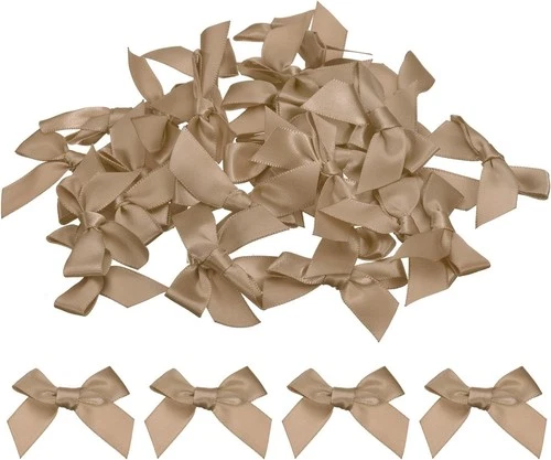 100x Satin Ribbon Bows Mini Flowers Craft Wedding Party Light Brown Diy Decorations