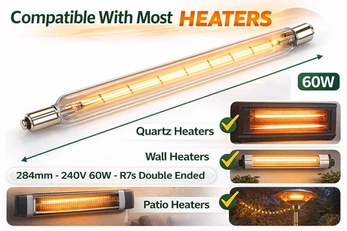 Striplight 240V 60W 284Mm/30w 221mm Clear Double Ended Tubular S15 Halogen Strip
