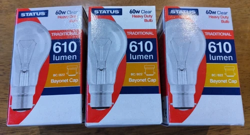 Status 60W Clear 610 Lumen Bayonet Traditional BC/B22 Bulbs x3 Heavy Duty