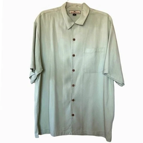 Tommy Bahama Mens Silk Short Sleeve Button Up Shirt Light Green Size M