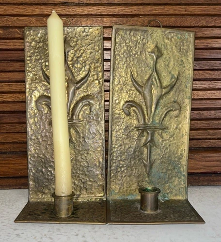 Antique Arts and Crafts Hammered Brass Candle Light Reflectors
