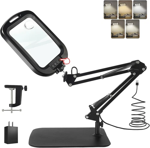 10X 30X Large Square Magnifying Glass with Light and Stand/Clamp, 60 LED Lighte