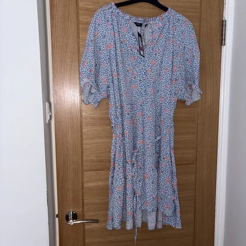 Marks And Spencer Light Blue Floral Short Summer Dress ~ Size 22 ~ BNWT
