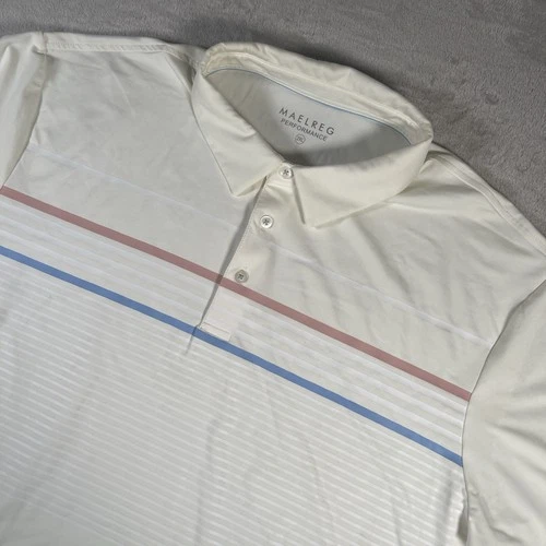 Maelreg Performance Polo Shirt Men’s 2XL Cream Striped Lightweight Golf UPF