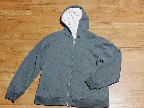 Women's Jay Day Gray Grey Zip-up Hooded Jacket Plush White Lining Size XL