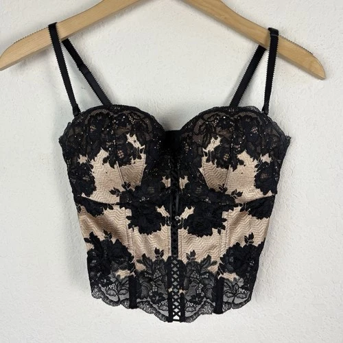 34C Victoria’s Secret Push-up Bustier Corset Top Festival Black Lace Renaissance