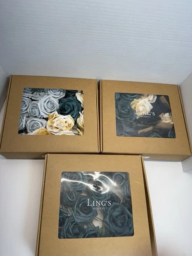 Lings Moment White & Teal Grand Combo DIY Artificial Flowers Blue Poppies & Ribb