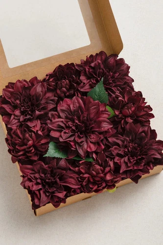 Ling's Moment Artificial Flowers 9 pcs Silk Dahlia 5.5"/4.5", Burgundy Silk