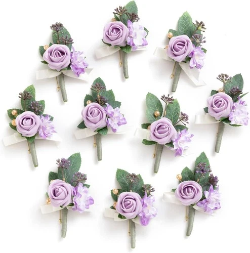 Ling's Moment Boutonniere for Men, 10pcs Groomsmen Guest Boutonniere, Lilac