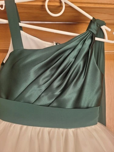 Flower girl dress with hunter green satin bodice and ivory tulle skirt. Age 6