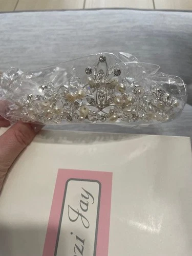 Communion veil with wire edge, diamate scatter, cross and pear drops (C91)
