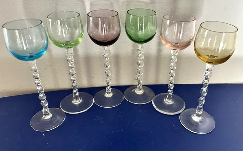 Multicolored Cordials Liqueur Glasses Clear Twisted Stem Stemware Set of 6