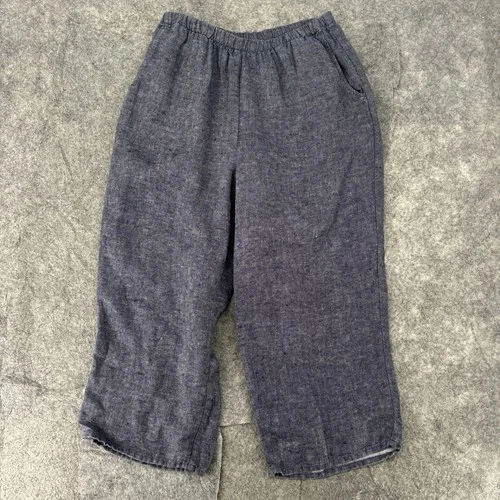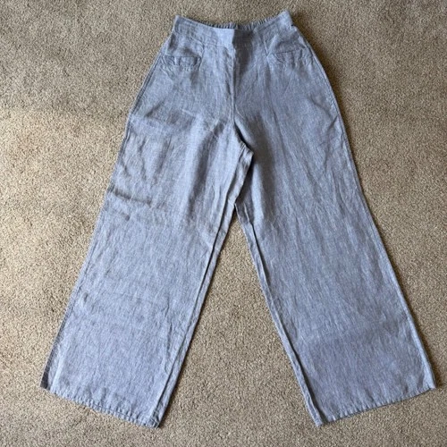 Flax Womens Blue 100% Linen Wide Leg Pants High Rise Elastic Waist Small NEW