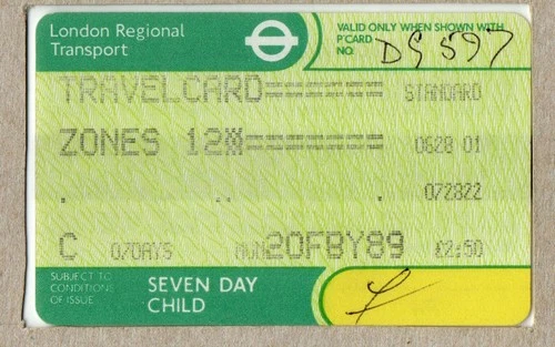 Travelcard Z12 Seven Day Child - UTS London Underground ticket season 1989