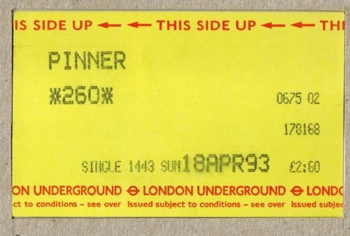 Pinner 02 - final UTS London Underground ticket -Metropolitan Line Middlesex HA5