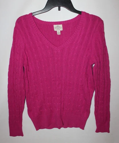 ST.John's Bay Cable Knit V Neck Pink 88% Cotton Long sleeve Sweater Women's M
